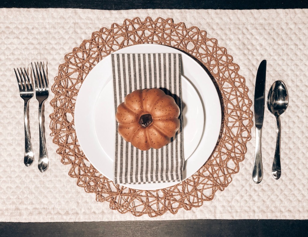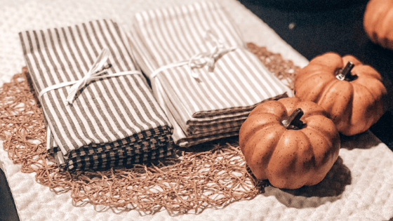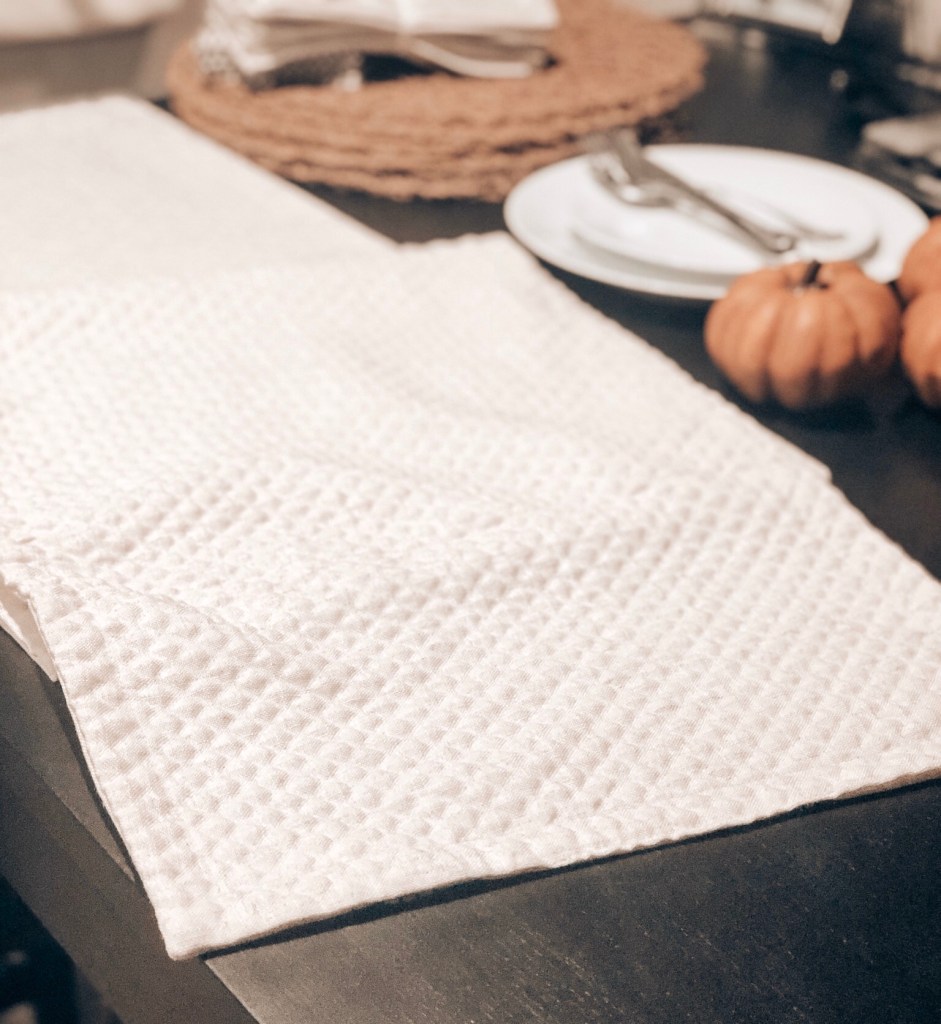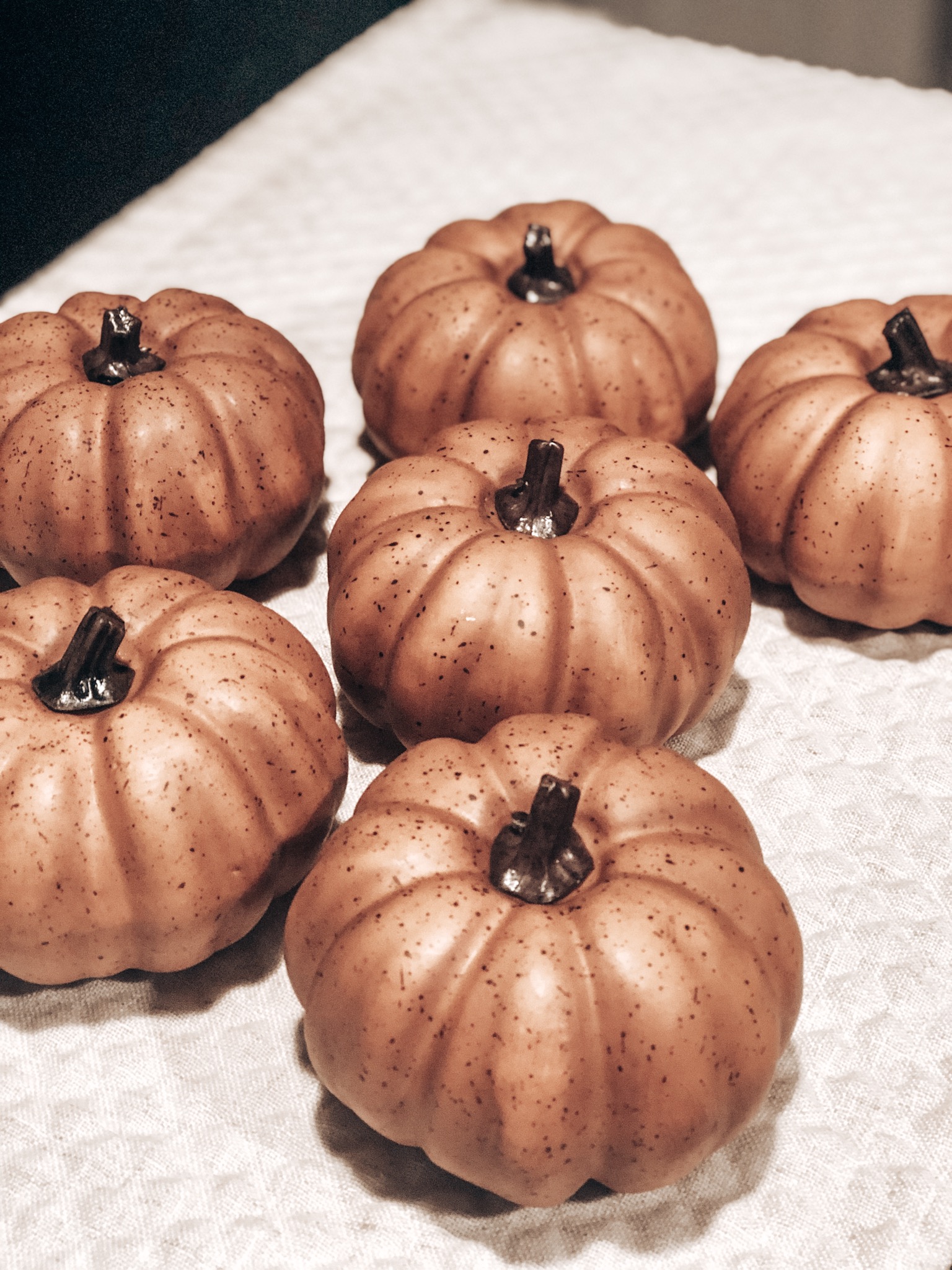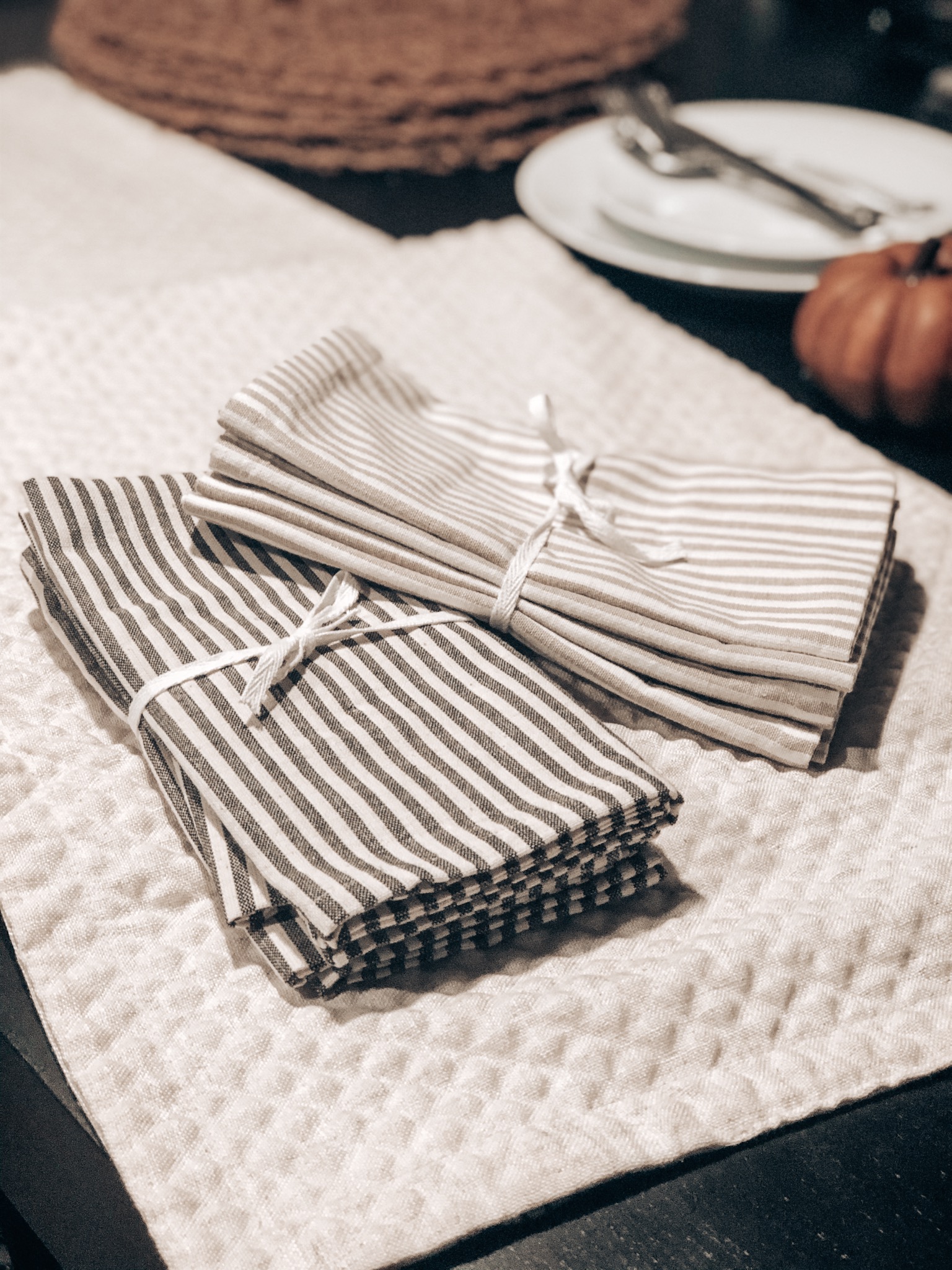 On our coffee table, I use a neutral table tray all year round. Around my bath and body works candle (currently burning Cranberry Woods – Iโm obsessed), I use seasonal floral. Of course for winter, I used more flocked greenery and pine cones around the candle stand.
