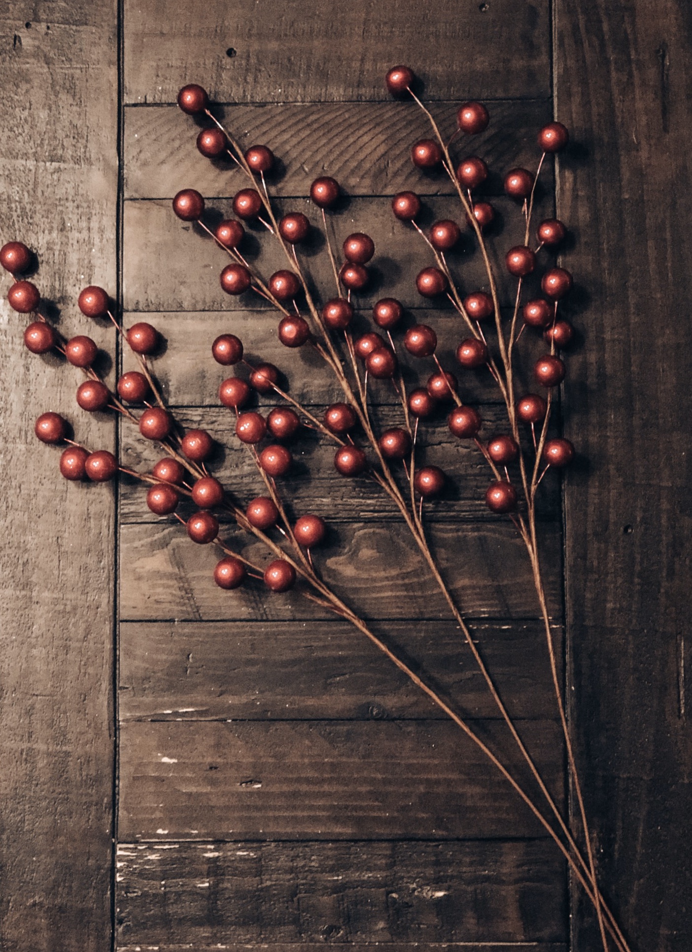 One of my favorite wall decor pieces is this wall sconce that is hung beside our bed. For winter, I added frosted greenery and berries. I just love the simplicity of this!