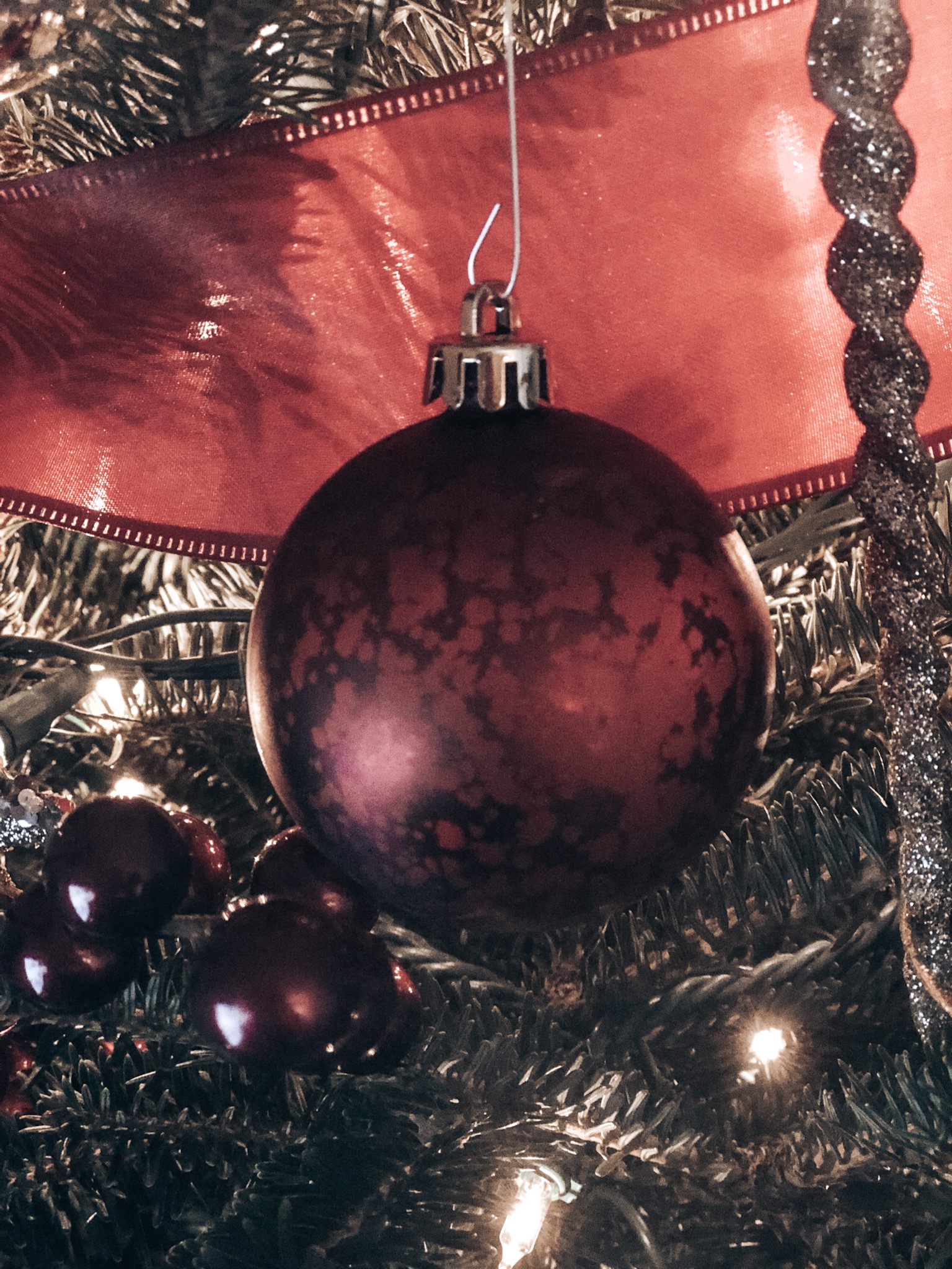 Our kitchen is on the smaller side and it functions as a hub to keep our frequently used personal items, and of course the daily cooking space for my husband. Although there isnโt much room for decor in the kitchen, I try to have a few seasonal elements. Above each window hangs a frosted garland. To match, frosted floral is used in a white vase by the sink and plant stand on the island.