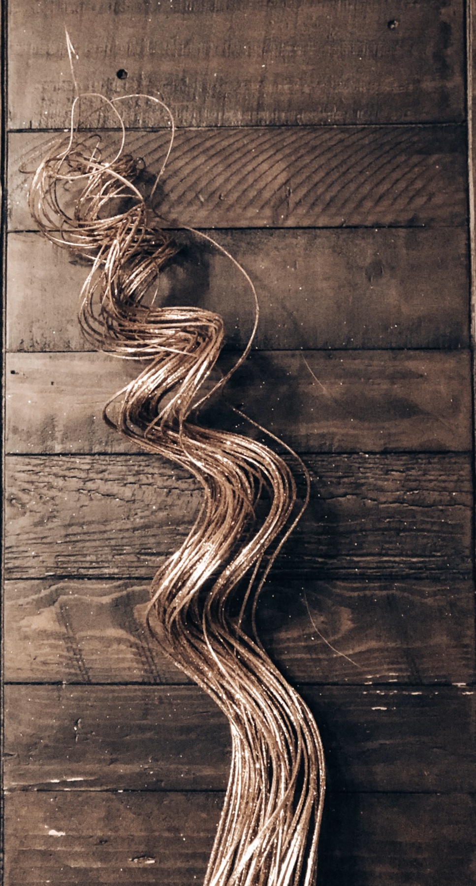 At the center of our shelves is a beautiful window frame with a wreath of flocked greenery and pine cones. The smaller shelves each have a vase of neutral pine cone floral, a small winter house, a small wreath, a white metal tree, and a candle sitting in a flocked wreath. I also used some candlesticks and copper orbs to add to look. The bottom shelf holds a simple garland. To match the garland to the rest of the decor, I added 6 flocked greenery stems, and several large pine cones throughout. I love adding elements to a wreath or garland as it allows you to customize it to the rest of your decor!