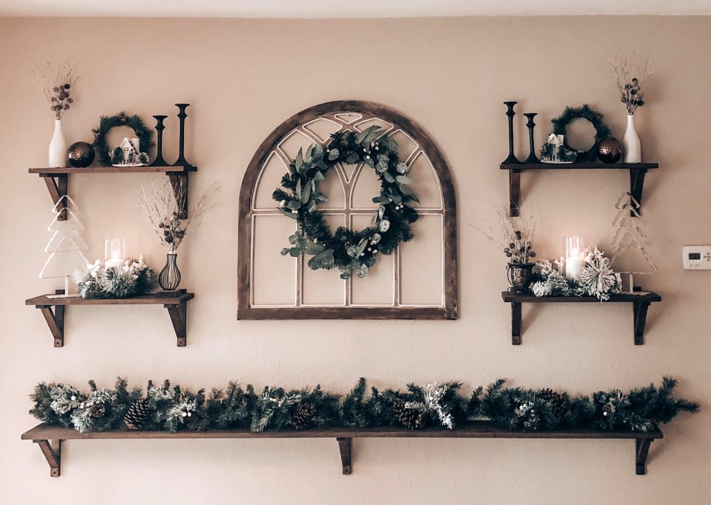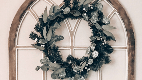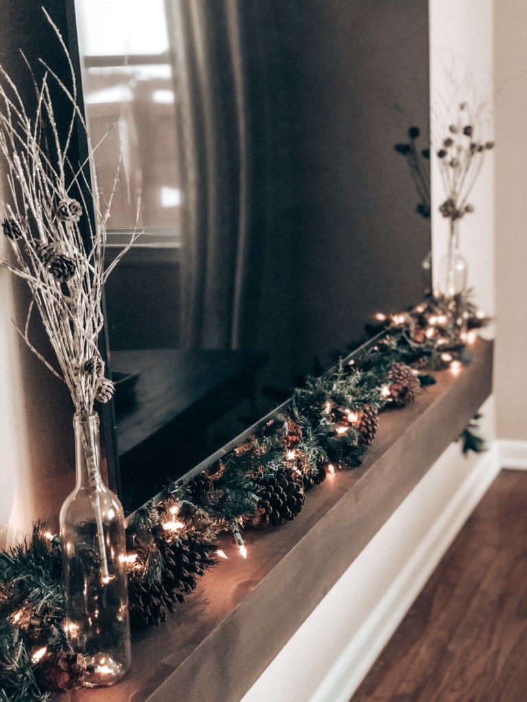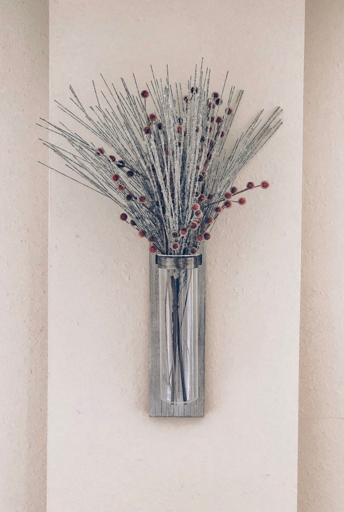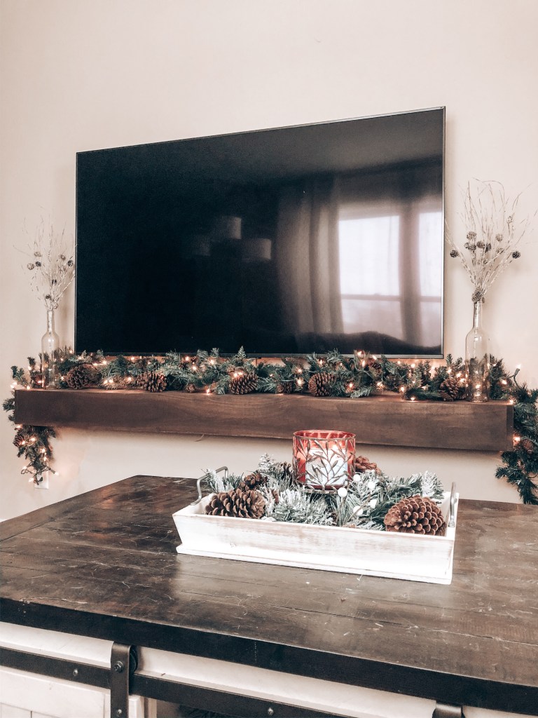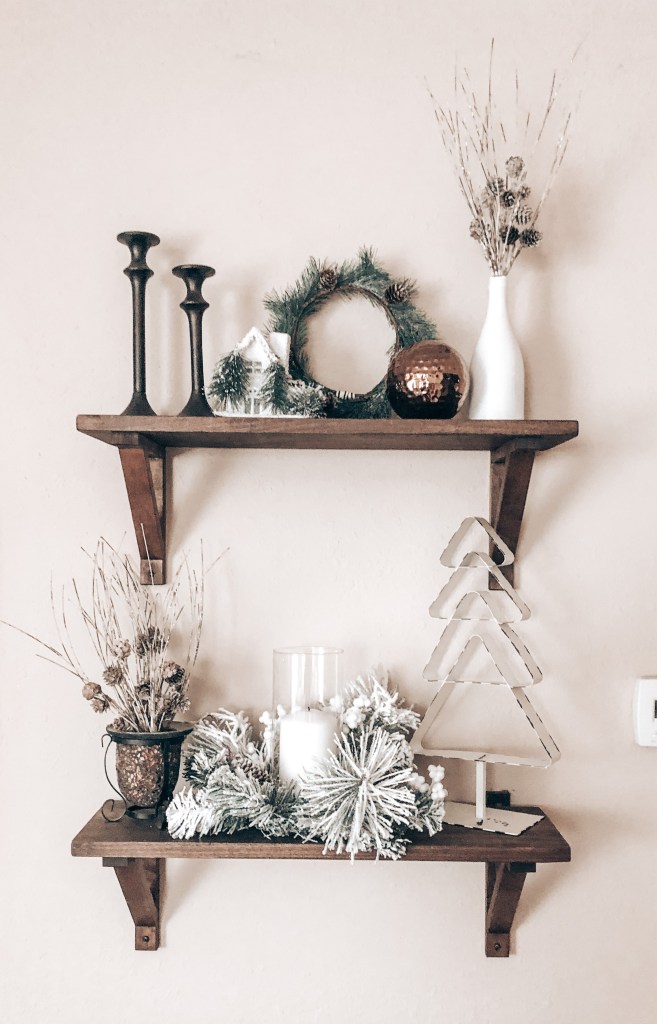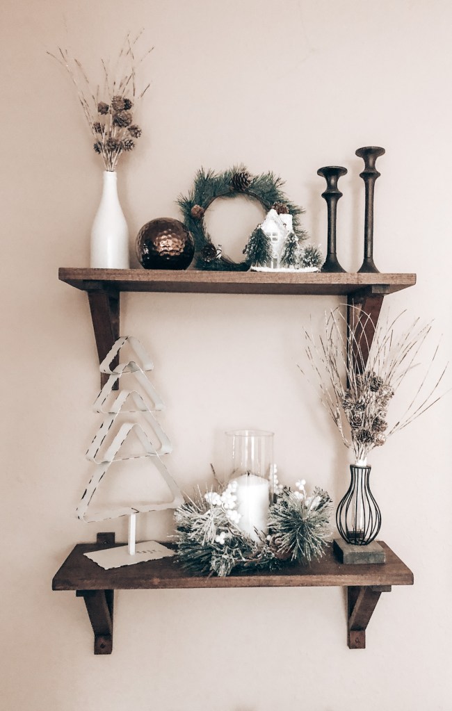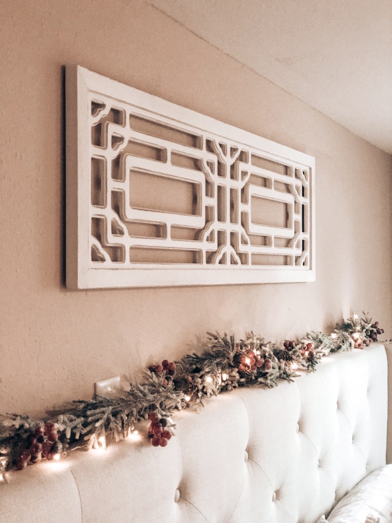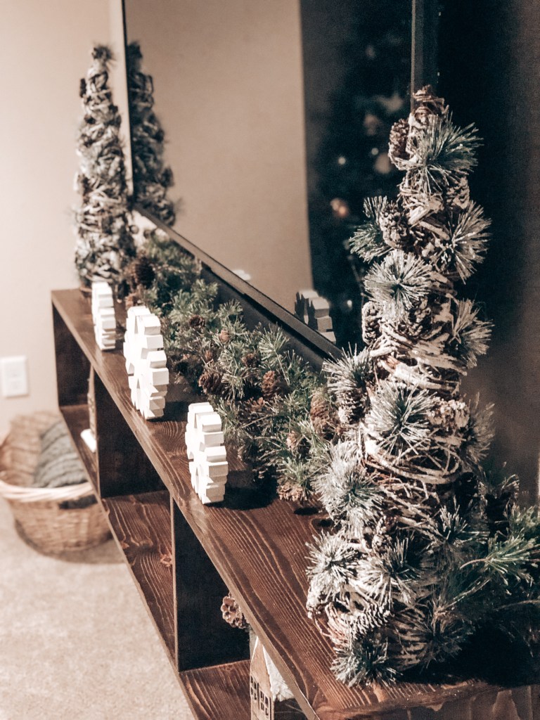 I bought an 8 inch x 6 foot board that I stained with the same shade (Honey) that I used for the poster frames. After the stain dried, I used these ruler stencils to paint on the numbers and hash marks with a shade of white acrylic paint. Itโs such a fun addition to the wall art in this space!