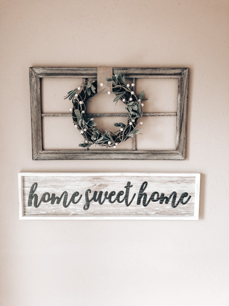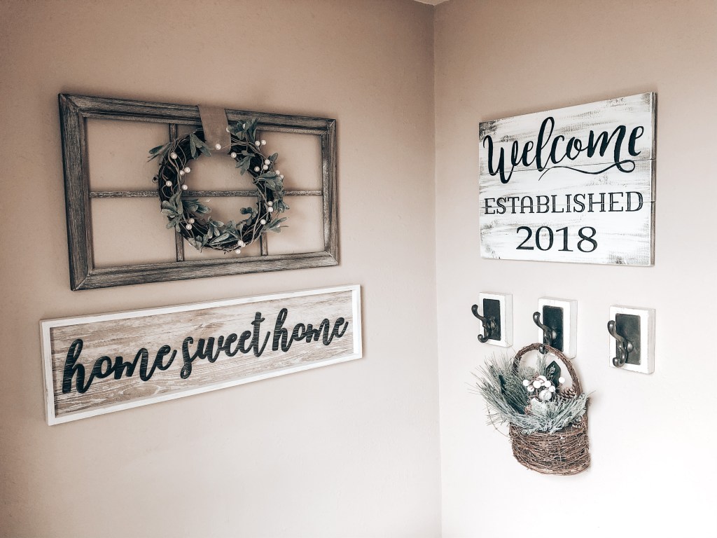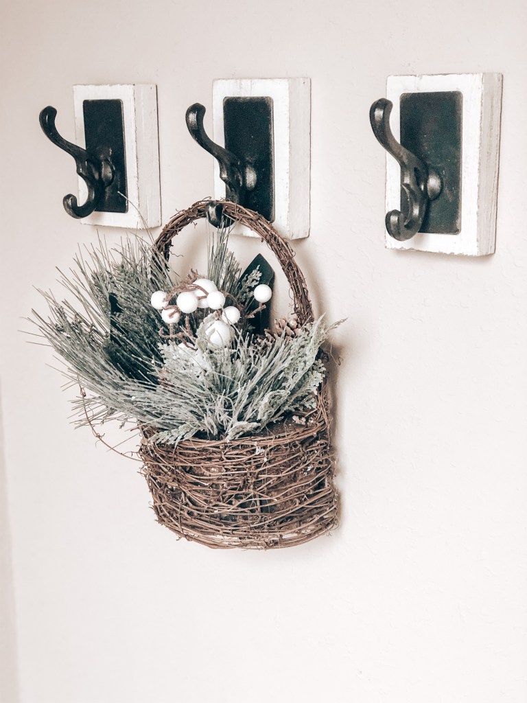 I found small wood trim that I cut into 20 inch and 16 inch pieces (the lengths of each poster size). Four pieces were needed for each poster, so I cut eight of the 20 inch and eight of the 16 inch. I found a wood stain (Honey Classic Wood Stain by Varathane) from Home Depot that matched the handles of the basket and cube bins, and I stainedย the wood and some twine for hanging. Once the wood was dry, I used craft glue to adhere two pieces to the front of the posters. I glued the bottom-back piece on and used a clamp to make sure the front and back were secure. The top-back piece looked a little different; I cut small grooves on the inside, about 2 inches from the edge, so that the twine could fit nicely between the wood and back of the poster. After letting everything dry in the clamps, they were ready to hang!